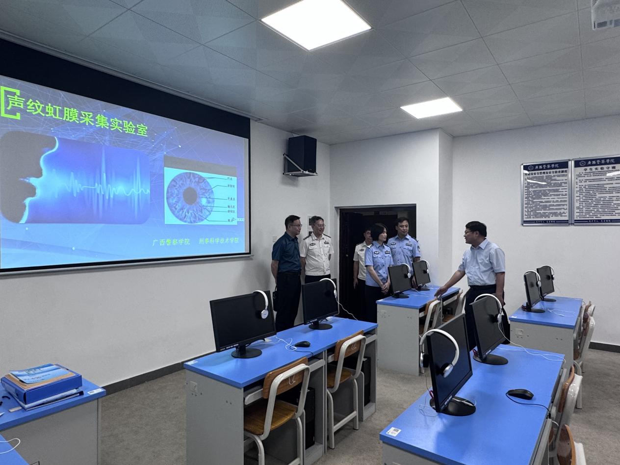会后,在广西警察学院相关负责人陪同下,吴茂旺一行参观了文件检验实验室、声纹虹膜采集实验室、电子取证实验室等司法鉴定学专业相关实验室。这些实验室在设备配备、教学功能以及科研产出等方面均展现出较高水准,为我校司法鉴定学专业实验室的建设提供了直观且极具参考价值的范例。