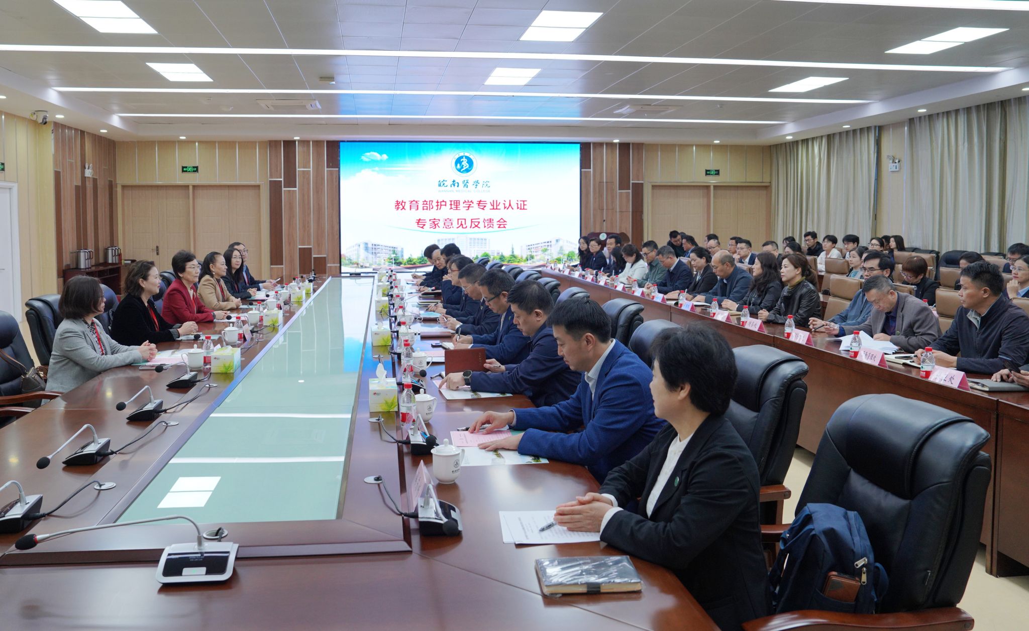 现场考察期间,专家组实地考察了校史馆、图书馆、基础医学院;走访了第一附属医院、第二附属医院、弋江区中南街道社区卫生服务中心等临床教学基地;召开了校学术委员会、两级督导组和学院专家委员会成员、各职能部处管理干部、学院院长、学院教师、临床带教老师、用人单位、毕业生以及不同年级学生等12场座谈会;深入考察了护理学专业实验实训中心、教研室,并分组开展了听课看课等。通过实地查看教学条件与实践场景、听取工作汇报、查阅教学档案、现场听课、考核实习学生临床护理技能等多种形式,对我校护理学专业展开全方位多维度考察。